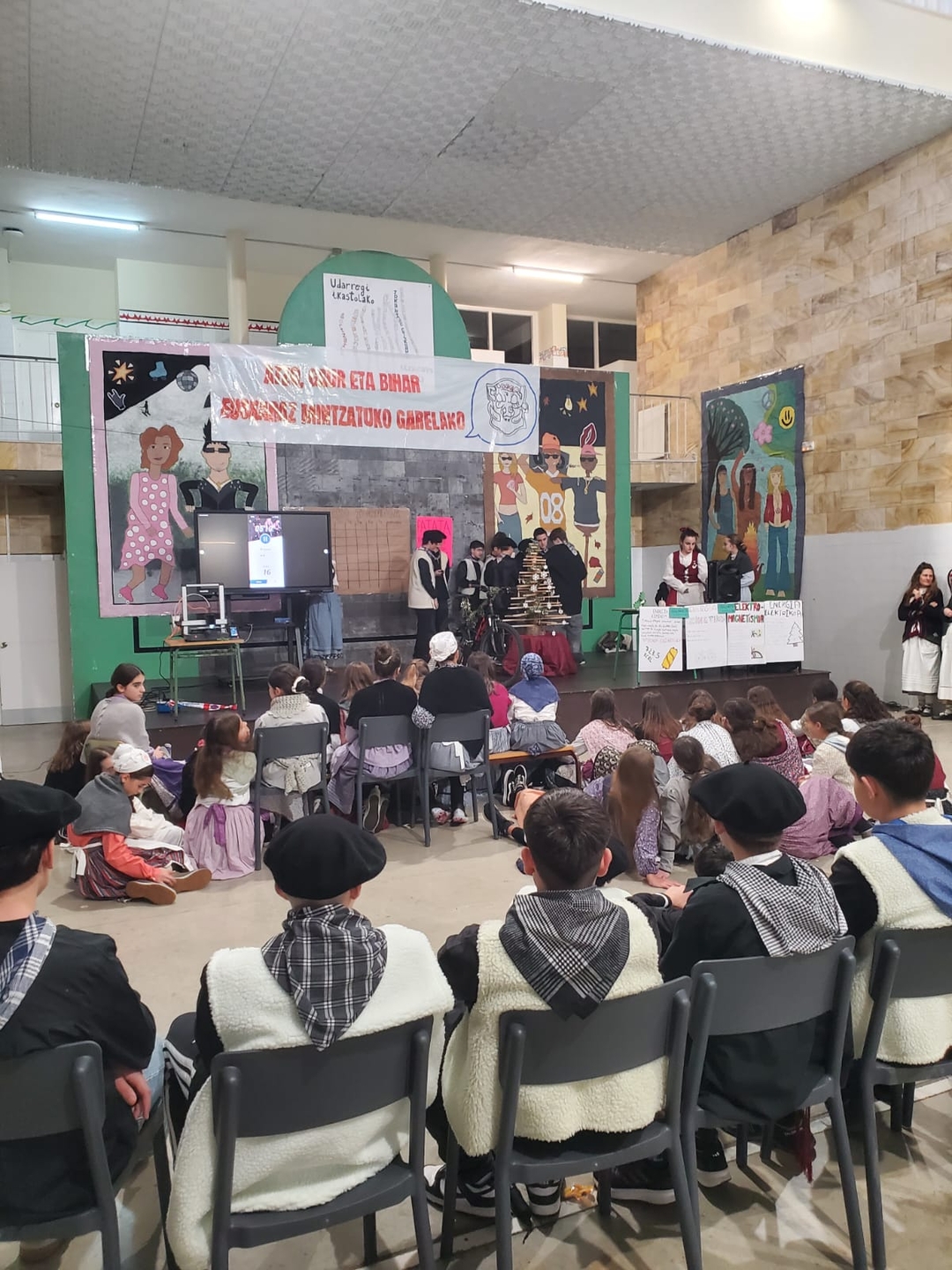 Bide batez, bizikleta gainean ibiltzen ziren ikasleei, taupadak neurtzeko banda bat jarri eta pantaila handi batean, bihotz taupadekin batera, ikasleek erre dituzten kaloriak neurtu eta ikusi ahal izan ditugu.