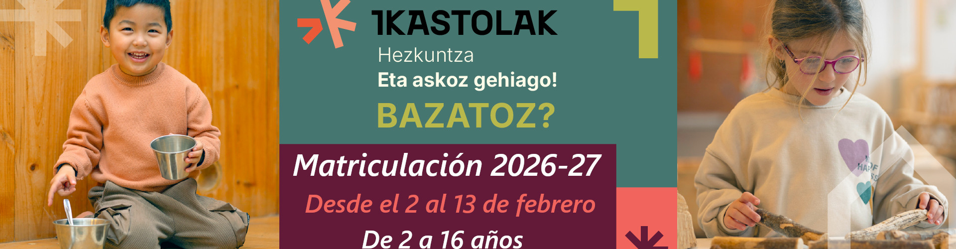 Datorren 2026/27 ikasturterako 2 eta 16 urteko haurren matrikulazio epea, otsailaren 2tik 13ra (biak barne) izango da.